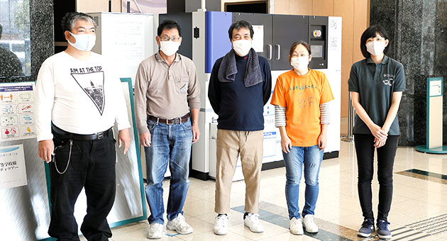 左:わくわーくの皆様 右:北九州市ヒューマンメディア創造センター内の作業部屋